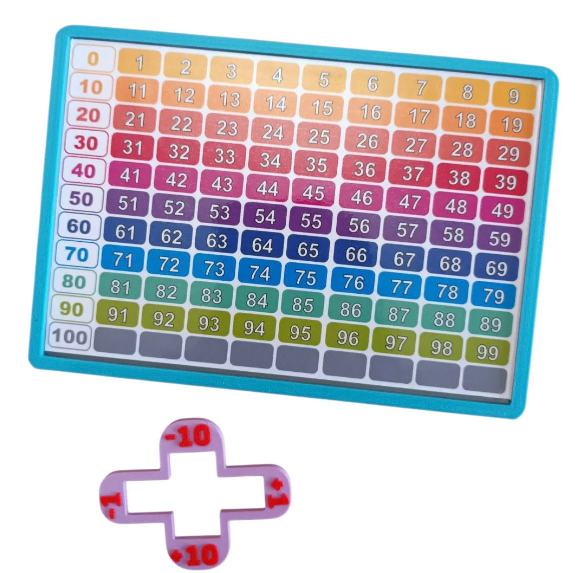 Este recurso didáctico está diseñado para favorecer el aprendizaje del conteo y la comprensión de relaciones numéricas. Incluye un tablero tipo “castillo de números” (del 0 al 100) acompañado de un accesorio en forma de cruz que permite trabajar de manera concreta y visual las nociones de: +1 ,−1 ,+10 y −10